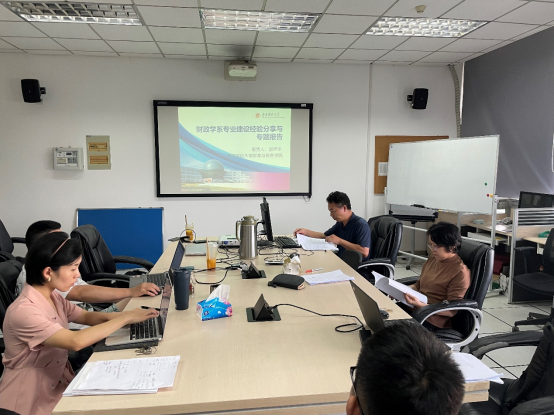 蔡军教授结合当前财政学专业正在进行的本科专业评估,认为专业评估工作要结合财政学专业特色,客观呈现教学状况,精准挖掘已有成果,精确表达专业现状,突出本专业建设的特色和亮点,并强调须客观展示公司的实验和实践教学平台、教学改革项目、教学成果、科研项目和成果等。在介绍教学经验时,蔡军教授强调做到“以本为本”,在强化师德师风培养、建设高效课堂教学、推进卓越教师培养、提升员工实践能力、服务地方社会发展等各个方面聚焦发力。