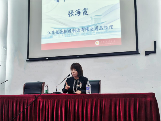 此次党课还邀请了江苏张弛轮毂制造有限公司总经理,云顶国际8588yd2006届优秀员工张海霞,分享了自己创新创业的经历。她从自己上大学开始的创业经历谈到企业家的社会责任,鼓励学弟学妹们要敢为人先,永远葆有创新的热情,要多读书才能发现更多机会,面对事业必须要有态度和责任心,并鼓励大家要敢于面对困难,学会适应改变,调整心态。并与对同学们的问题进行了认真详细的解答。