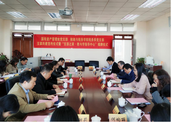 11月12日上午,国有资产管理处党支部与公司税务系党支部在德经楼408会议室举办支部共建签约仪式暨“支部之家·教与学指导中心”揭牌仪式。公司党委常委、总会计师黄建元、校机关党委书记郝园园出席仪式,国有资产管理处处长丁书俊、副处长庄素娟、处长助理王建立,公司党委书记陈苏、副书记李慕原、副经理田志刚、经理助理骆永民,双方单位全体教工党员参加了本次共建仪式。会议由公司党委书记陈苏主持。