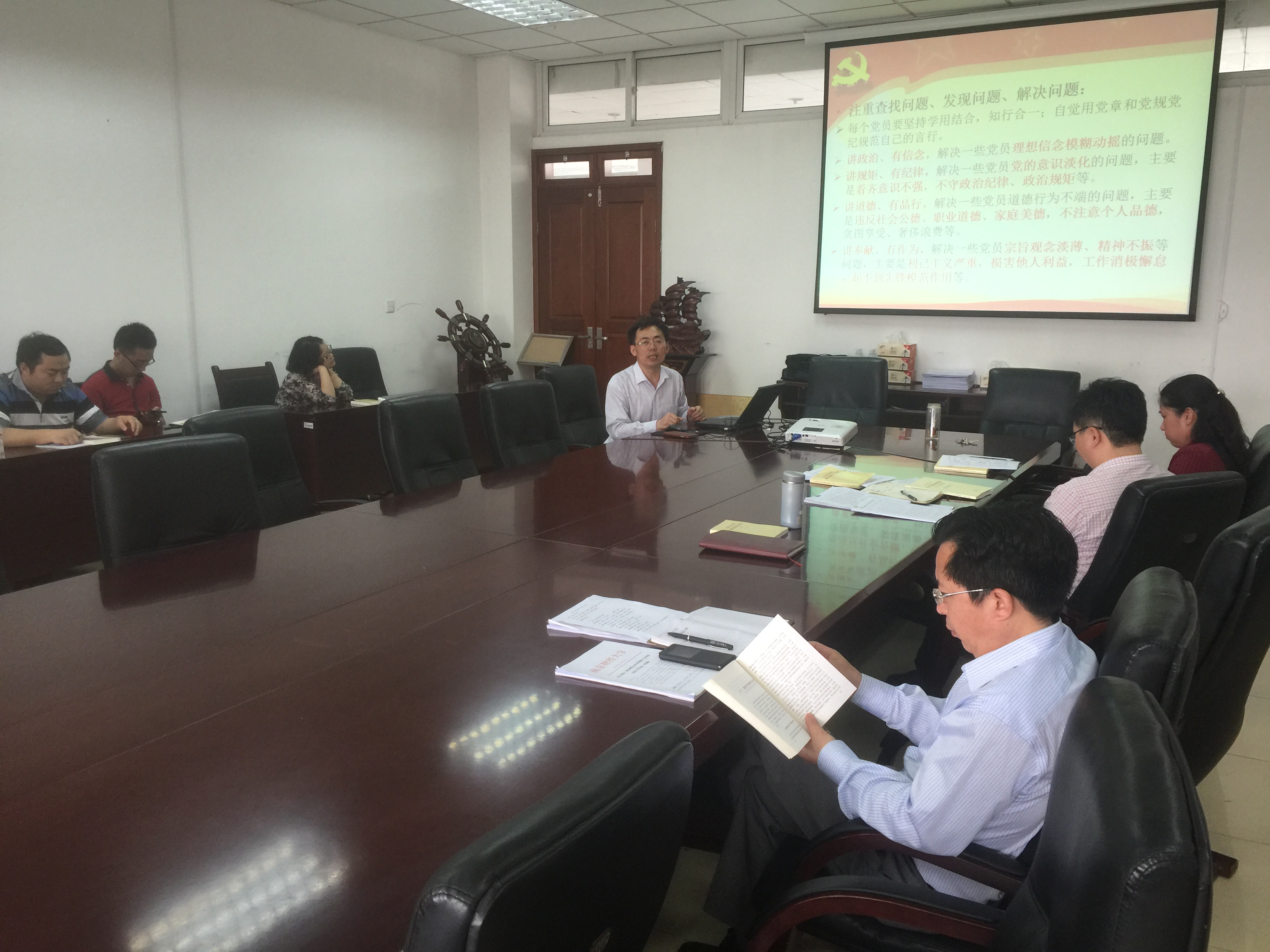 关于学党章党规,他对党章、《中国共产党廉洁自律准则》和《中国共产党纪律处分条例》部分内容和条款进行了重点解读,结合现实事例给大家提醒和警戒。学系列讲话,他重点报告了关于全面从严治党中加强作风建设、加强政治纪律与政治规矩、加强思想建设与制度建设等方面的要求。