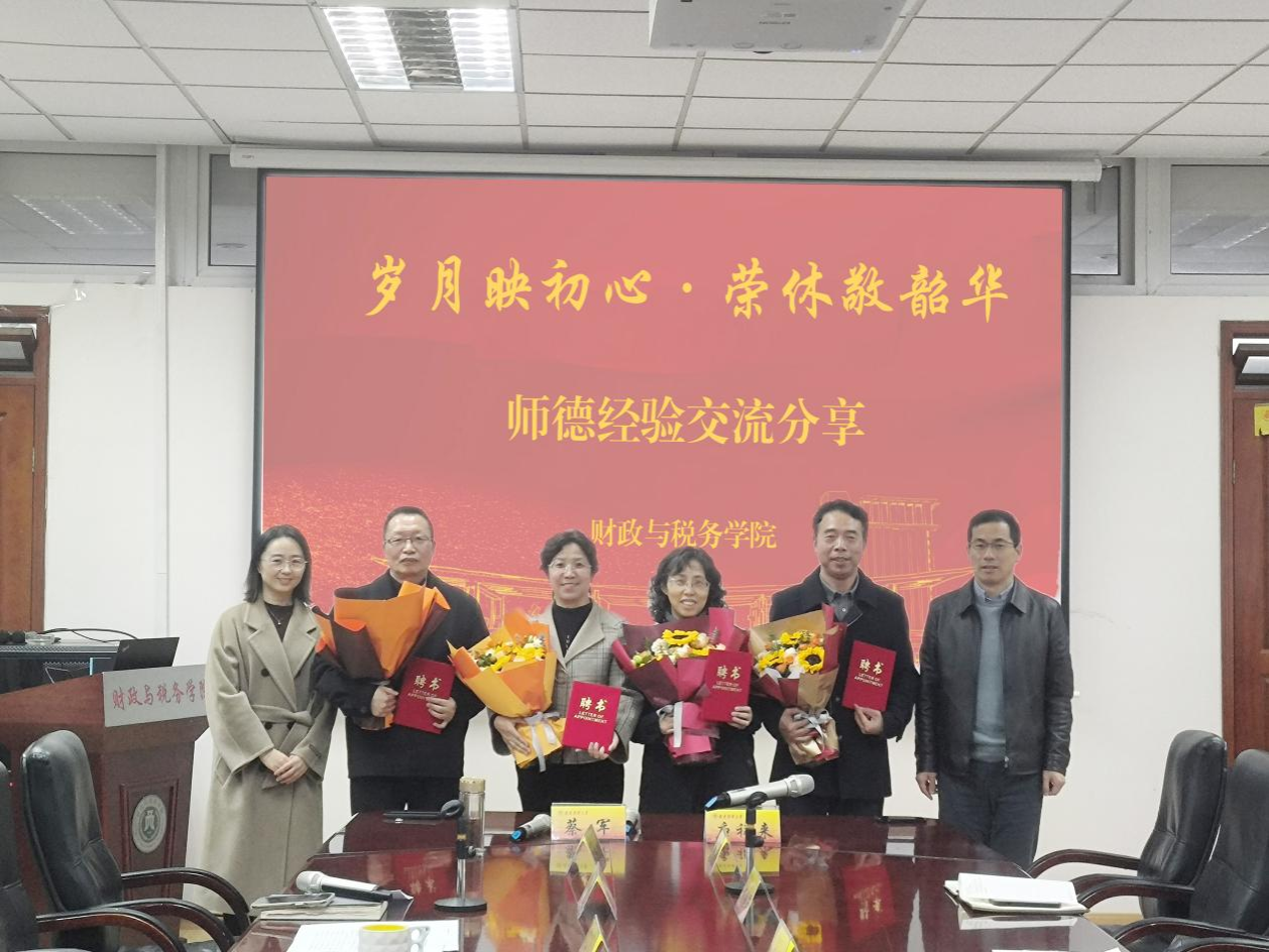 接下来,杨继军经理深情寄语,感谢老教师们将自己的青春年华都撒在了财税这片热土上,正是他们无私奉献、踏实勤奋的精神已成为青年教师的精神信仰,祝愿四位老师退休生活多姿多彩、健康快乐,在人生的又一个旅程中开启新的篇章。最后,杨经理为四位老师颁发“云顶国际8588yd‘五老讲师团’聘书”,由年轻教师代表进行献花,并进行合影留念。