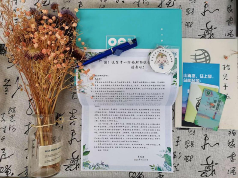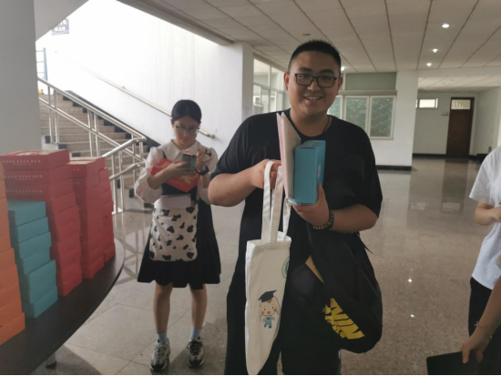 在报到现场,新生何羿锋抽到了公司精心准备的便签本和印有“财税青年,当以身作则,成中流之砥柱”的书签,他说:“生活就像一盒巧克力,我们永远不知道将得到什么。而这份新颖的盲盒让我感到了惊喜!书签上的这句寄语让我对这个专业有了新的认识。”值得一提的是,盲盒中的信件是使用可再生纸张进行书写,部分迎新用的道具也是来源于过去几年的库存,循环利用,在给新生们传递温暖的同时,响应节约资源,保护环境的号召。