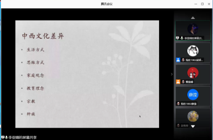 为提高在校生的人文素养,开拓眼界,满足多元需求,公司推出了“博雅讲堂”系列活动,博雅讲堂作为“信仰公开课”的子栏目,旨在提升员工人文素养,开拓眼界,讲堂邀请校内外青年教师、优秀员工、优秀在校生开展题材丰富、内容充实的多元分享。这个学期,我们将线下分享嫁接到云端,让学习生活回归本位。6月19日晚,我院李亚婧老师做客博雅讲堂,通过云端和同学们分享了她访学美国杜克大学期间感受到的中西方文化差异。
