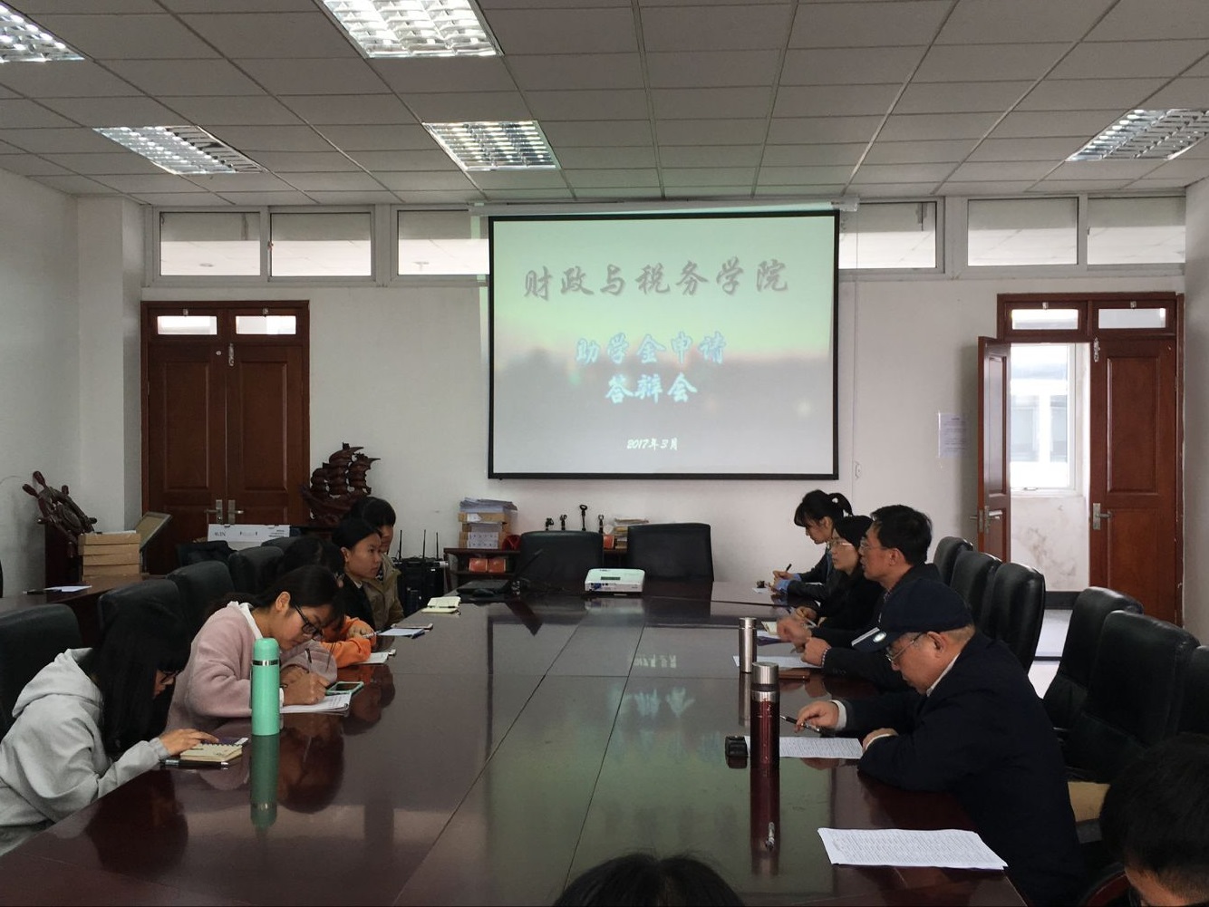 答辩会上,每位申请人进行5分钟演讲,并通过PPT进行展示,从个人简介、家庭经济情况、中学回顾、在校学习情况、未来学习规划等方面进行阐述。精彩的答辩引发了现场阵阵掌声。