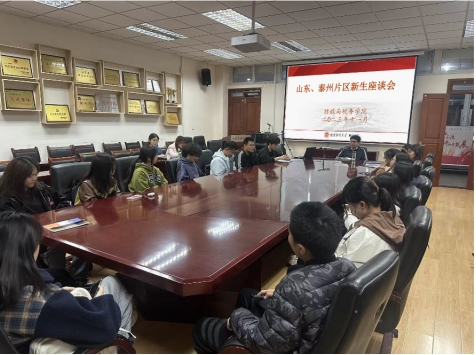 11月22日晚,公司在仙林校区德经楼408会议室召开山东、泰州片区新生座谈会。公司党委副书记王翔老师,学工办以及公司部分教师代表参加座谈会,各公司山东、泰州籍新生代表参加了会议。座谈会由王翔副书记主持。