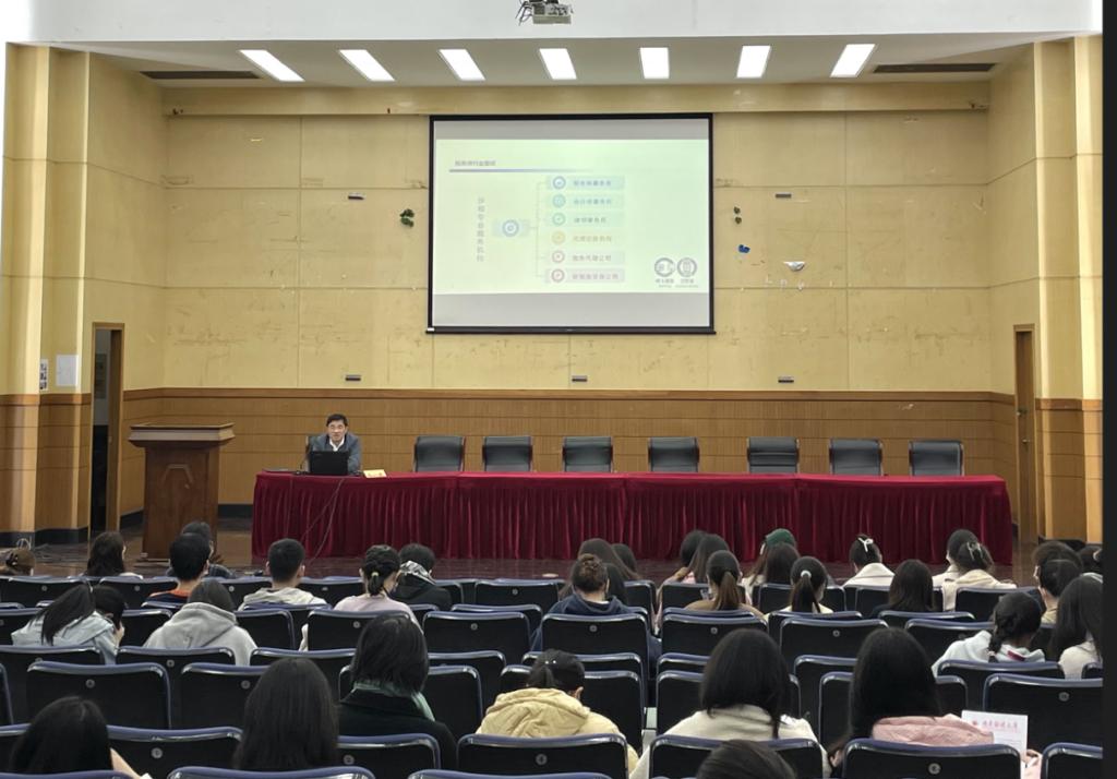 为增强毕业生的专业认知,把握就业方向, 11月22日下午,公司在仙林校区德济楼二楼报告厅举办南财就业创业讲堂-税务师行业的现状和未来,讲座由公司党委副书记王翔主持,江苏省峰上税务师事务所所长马一军主讲,公司2019级全体员工参与讲座。