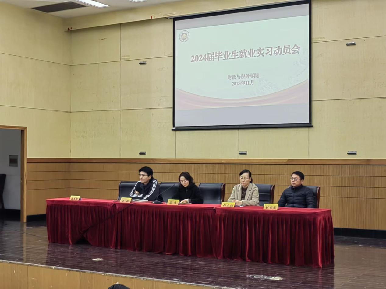 随后,我院召开2024届毕业生就业实习动员会。陈苏书记汇报说明了近几年毕业生的考公考研录取率,强调了就业的重要性,希望同学们重视就业咨询群内的信息和公司校招,摆正心态,尽早做好就业安排,动员大家在准备考试的同时做好两手准备。税收系、财政系教师代表刘家成和刘志红则分别强调了毕业实习及毕业论文的重要性。最后,毕业班辅导员张周驰再次强调当前就业形势的严峻,再次强调就业的重要性,同时对就业协议相关事项做出提醒。