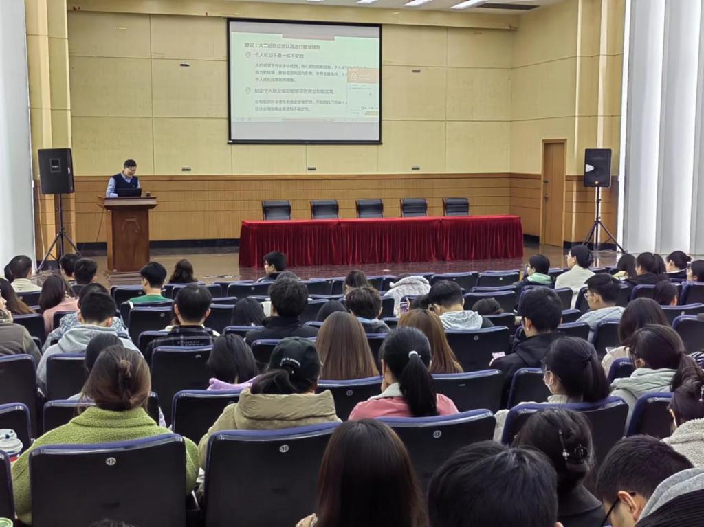 杨老师鼓励同学们好的生活是规划出来的,只有定期地进行规划和调整,美好的愿望与生活才能如期而至。同学们应该有明确的就业规划,应多思考就业规划中需要考虑的问题,从而做一些就业准备,掌握面试的应试技巧。杨老师还针对近期就业形势强调同学们应杜绝被动就业,鼓励同学们主动就业。讲座过程中,同学们认真倾听,学习相关内容。