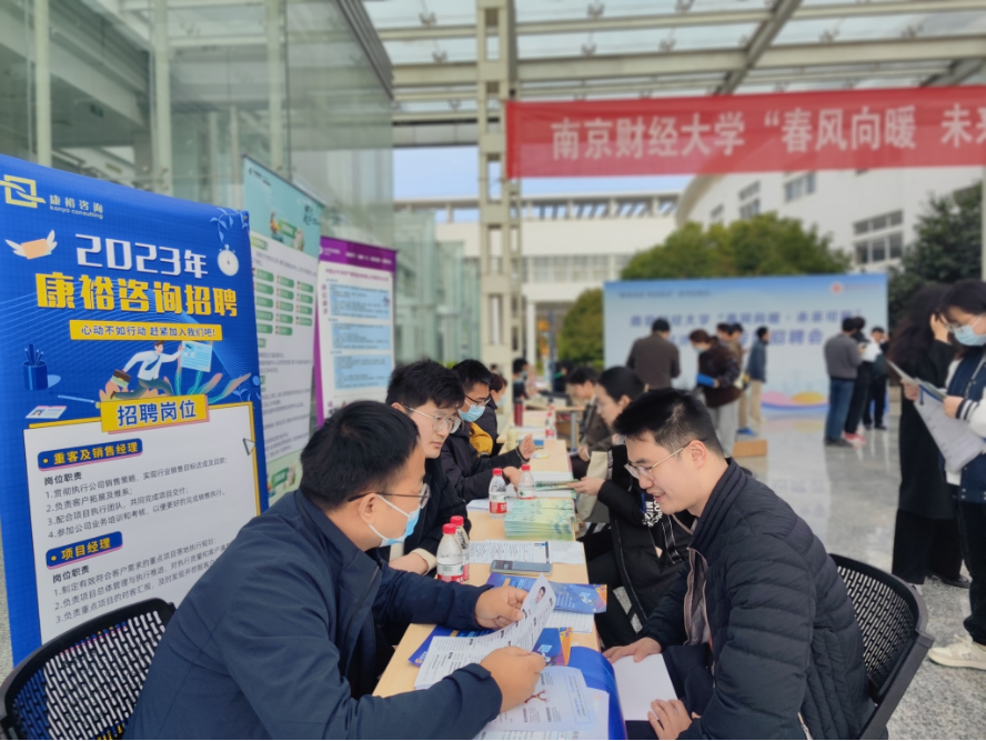 此次招聘会吸引了包括江苏工程勘测研究院、中国邮政江苏分公司、中建安装、苏宁易购等三十家用人单位参会,累计提供了近千个岗位,部分企业还为在校生提供了实习岗位。招聘活动中,江苏工程勘测研究院、苏宁易购股份有限公司、江苏舜安医疗器械有限公司在老员工活动中心招聘室举办了宣讲会。据统计,本次招聘会累计收取简历近千份,约有345名毕业生通过用人单位初步面试筛选,初步达成就业意向。