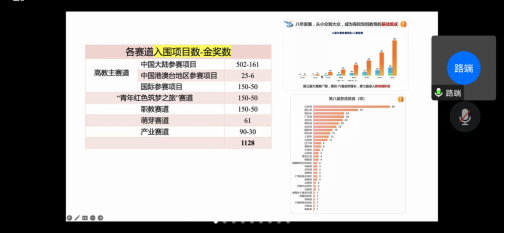 为做好公司第九届“互联网+”老员工创新创业大赛暨省赛选拔赛备赛准备工作,加强师生联动,强化创新创业能力训练,增强高校员工的创新能力和在创新基础上的创业能力,培养国家建设需要的适应性创新型高水平人才。12月6日下午2点我院举办了“互联网+”创新创业专题线上讲座。本次活动邀请了南京大学路端老师为大家讲解,并给予同学们关于创赛方面的建议。讲座由公司分团委书记、“互联网+”联络人张周驰老师主持。