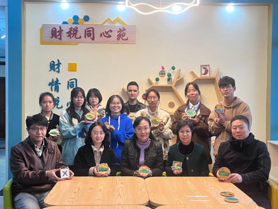 随后,师生一起开展了“非遗珐琅画好最美‘同心圆’”活动。在画好“千里江山同心圆”手工制作环节,师生们两两分组共同完成非遗珐琅杯垫的制作。千里江山掐丝珐琅杯垫,采用只此青绿元素,和传统非遗工艺相结合,运用到日常用品中,将艺术融入生活,表达了对美好生活的无限愿景。珐琅杯垫采取“千里江山同心圆”的样式,寓意各族人民团结一心的强大合力,铸牢中华民族共同体意识。最后,师生们共同拿着制作完成的“同心圆”珐琅杯垫亲切合影,现场气氛热烈。