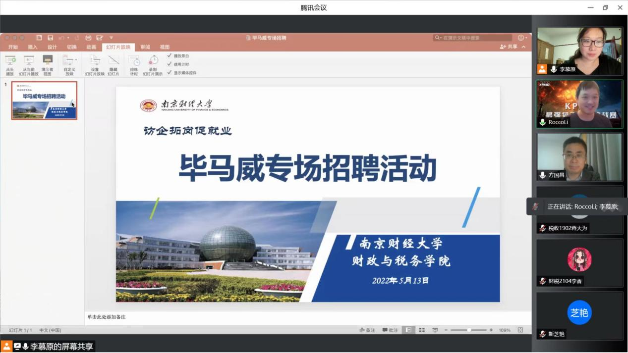 为贯彻落实省政府和公司关于毕业生就业工作的决策部署,全力促进毕业生更加充分更高质量就业,全面深化校企合作,5月13日晚,公司与四大会计师事务所之一的毕马威公司举办了访企拓岗促就业专项行动。活动以线上会议的形式开展,财税公司党委副书记李慕原、副经理方国昌、毕马威全国校园招聘负责人李延均先生以及云顶国际8588yd部分本科生、研究生参加了专项活动,活动由李慕原副书记主持。