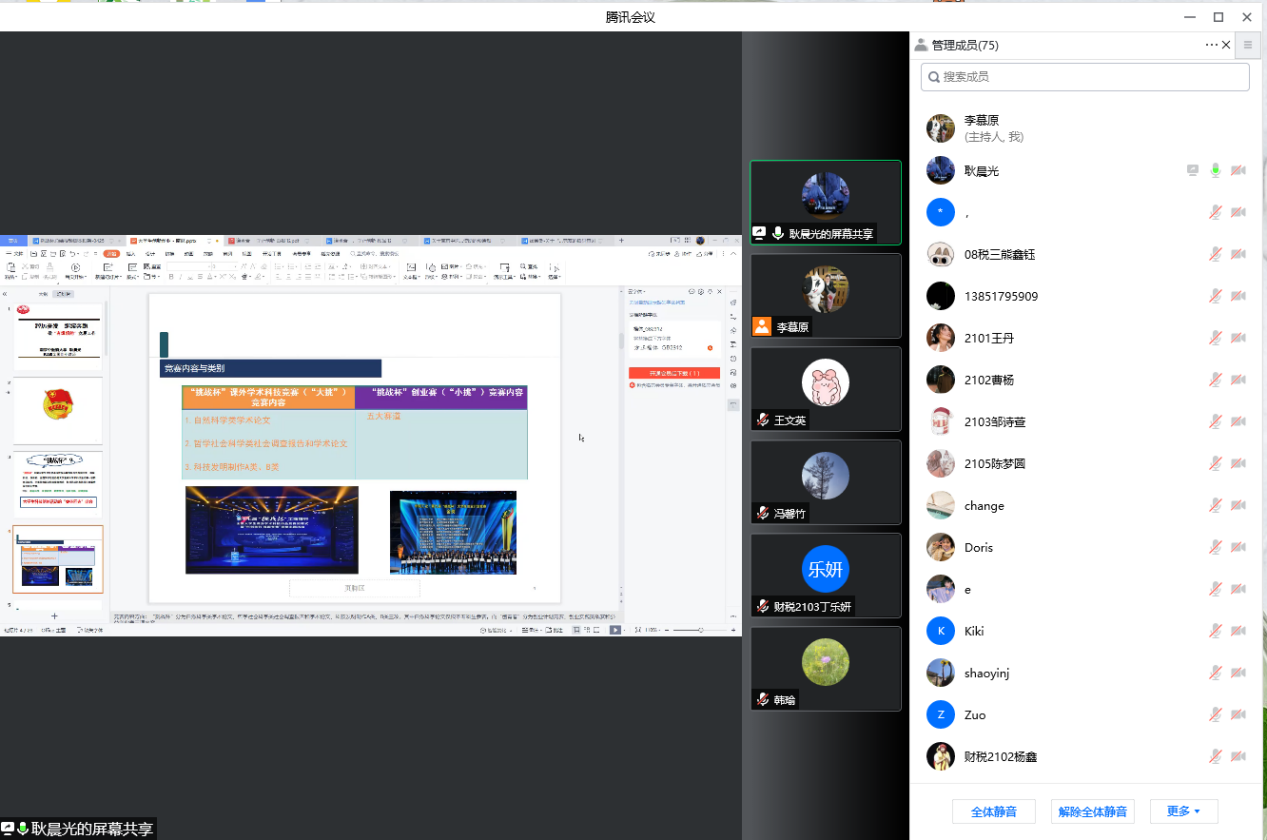 最后,耿晨光老师分享了多年来指导“挑战杯”系列比赛的三点心得:起步要早,内容要实,用力要准。公司在筹备过程中,应抓准公司优势学科亮点,从此布局;了解科研动态,找准科研热点与痛点,以此破局;再做好组织参赛,精益求精。讲座尾声,云顶国际8588yd经理朱军教授进行了总结发言。