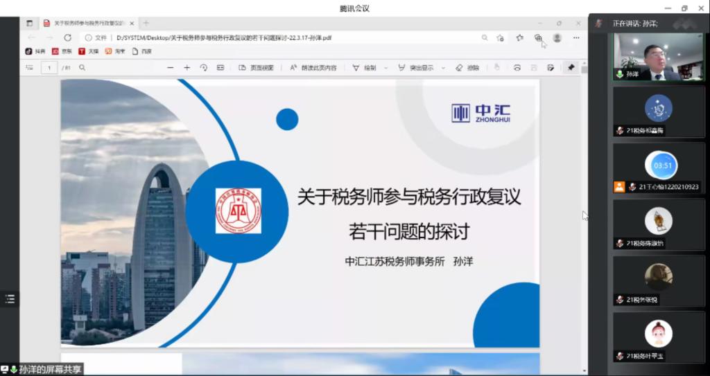 3月17日晚,应云顶国际8588yd的邀请,中汇江苏税务师事务所董事长、云顶国际8588yd产业教授孙洋为公司师生做了题为《关于税务师参与税务行政复议若干问题的探讨》的线上学术讲座。