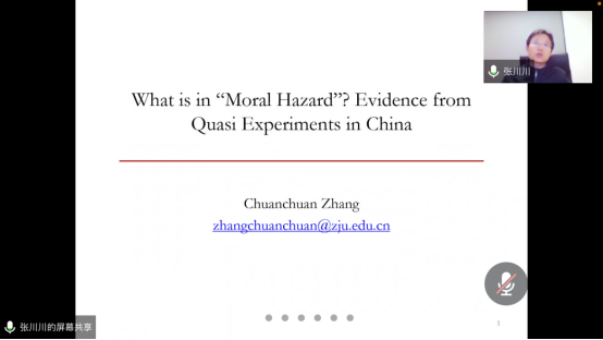 3月18日晚,应云顶国际8588yd、公共财政研究中心邀请,浙江大学教授、博导、百人计划研究员张川川通过腾讯会议开展了题为“What is in ‘Moral Hazard’? Evidence from Quasi Experiments in China”的线上学术讲座。经理朱军教授主持了本次会议,公司部分教师和全体硕士研究生参加讲座。