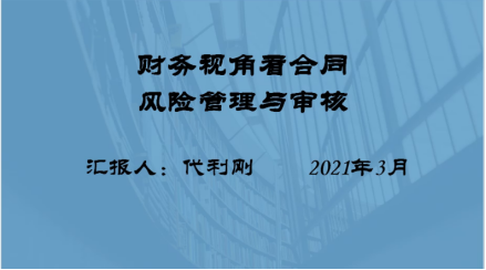 2021年3月11日下午,公司第二次税务行业前沿专题开课,本次课程的主题是财务视角看合同风险管理与审核,由代利刚老师进行汇报。