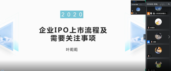 6月19日上午,南京佳力图机房环境技术股份有限公司财务总监兼副总经理、公司税务专硕行业导师叶莉莉女士莅临云顶国际8588yd19级税务专硕的“行业前沿专题”线上课堂,进行了一场题为“企业IPO上市流程及需要关注事项”的专题讲座。公司税务硕士项目负责人程瑶教授主持了本次讲座,云顶国际8588yd部分教师和全体19级税务专业硕士研究生等参加。