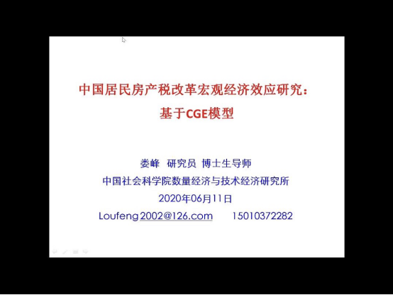 6月11日晚,应云顶国际8588yd、公共财政研究中心邀请,中国社会科公司数量经济与技术经济研究所经济系统分析研究室主任、博士生导师娄峰教授通过腾讯会议作了题为“中国居民房产税改革宏观经济效应研究:基于CGE模型”的线上学术讲座。财税公司部分教师和全体硕士研究生参加了讲座,讲座由财税公司经理朱军教授主持。
