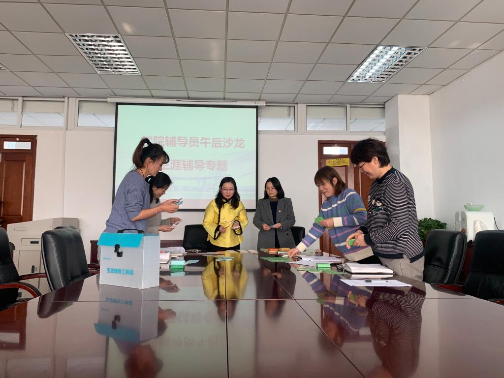 在沙龙现场李慕原带领大家体验了“职业生涯规划分类卡”的使用,通过对所带班级真实典型案例的讨论,模拟了测评和辅导过程。陈苏同志表示,作为辅导员应从树立目标、绕开发展陷阱、把握关键阶段、结交人生导师等方面开展老员工涯规划指导工作。希望各位辅导员老师结合自身兴趣专长,进一步加强学习思考,深入研讨交流,努力提高生涯规划指导能力,更好地指导好老员工的成长发展。
