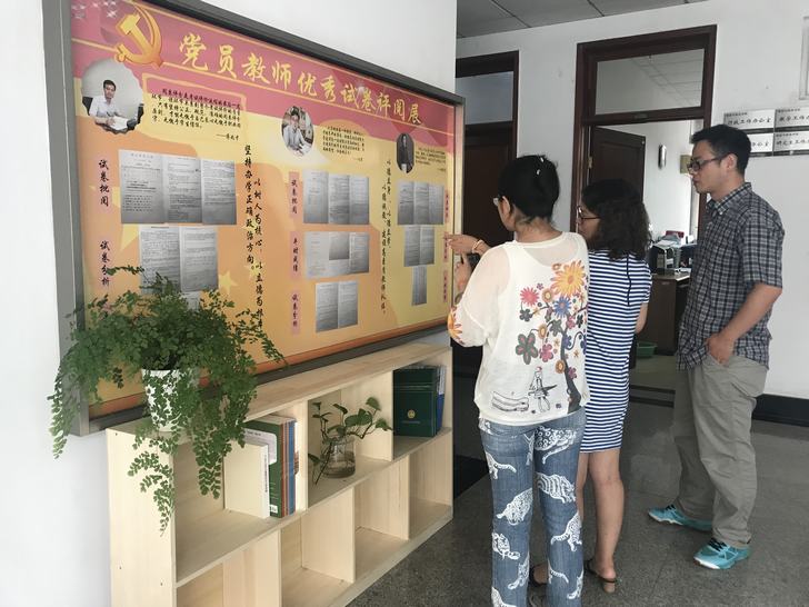 此次评阅展由公司督导组选取了朱军、张秀莲、蒋兆才三位党员教师的试卷批阅情况和平时成绩记录、试卷分析等。阅卷卷面规范细致,得分点明确,平时成绩记录准确,试卷分析客观精准,有说服力。试卷评阅展出后,公司教师积极观看、拍照,为即将到来的试卷评阅工作做准备。
