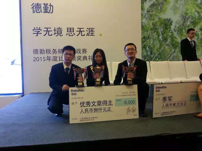 10月25日,2015德勤税务精英挑战赛在重庆顺利落下帷幕。公司伍洲同学与来自上海财经大学的田志伟同学、来自北京大学的耿纯、赵仲匡同学在众多参赛者中共同名列征文比赛榜首(排名不分先后),喜获德勤税务精英挑战赛论文比赛最高奖项“优秀奖”。