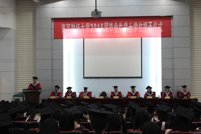 证书颁发结束,公司毕业生代表财政1102班周烨同学发言。周烨同学表达了对母校、对师长的感谢,深情回顾了自己难忘的大学四年生活,并寄语自己和同学们离别的祝福:愿大家都能在社会的磨练中学会分析与思考、合作与竞争、创新与成长。“聚是一团火,散是满天星。”大学的结束是终点,也是起点,在激昂的《南财大之歌》声中,公司2015届毕业生学士学位授予仪式圆满落幕。