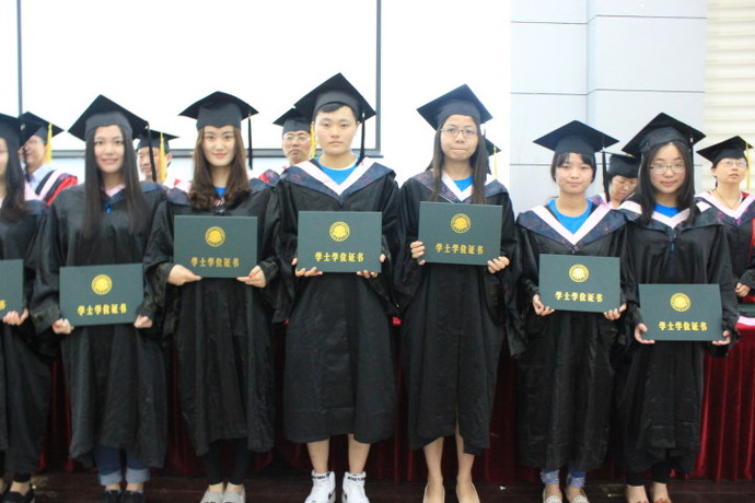 紧接着公司副经理朱军副教授宣读了《关于授予2015届毕业生学士学位的决定》,毕业生们身穿学士服,走上前台,校领导及公司领导、教授为他们一一拨过学位帽上的流苏,授予学士学位证书。毕业生们不舍的接过导师手中的证书,道一声感谢。简短俩字,包含着对母校、师长四年关怀和付出的感恩,更有对母校的依依不舍之情。