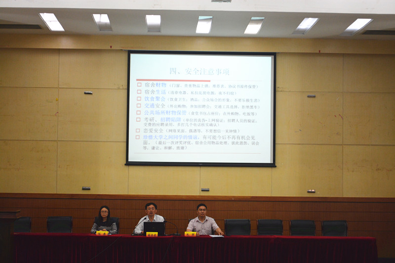 张金龙书记指出,作为大四即将毕业的员工,在快要离开校园之际,要珍惜最后的在校时间。毕业期间的安全是不可忽视的问题。提醒大家毕业聚餐等活动不能过度饮酒。张书记同时强调了就业的重要性。对于一些有就业能力而犹豫不决,在等待中丧失就业机会的同学,他提醒大家要明确自身的职业规划。