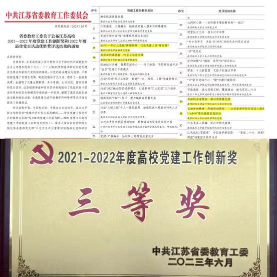 近日,中共江苏省委教育工委公布了2021—2022年度高校“党建工作创新奖”优胜奖评选结果(苏委教组函〔2023〕24号),公司党委的“双师双创强基能,红蓝文化育先锋”获“党建工作创新奖”三等奖。