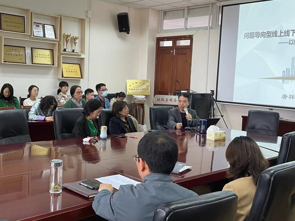 2024年4月17日下午,按照公司“名师名课示范观摩”活动的部署,公司邀请了校级教学名师唐祥来教授为全院专职教师做题为“问题导向型线上线下混合教学改革实践——以财政学为例”的教学经验分享。参与此次教研活动有公司党委书记陈苏、经理杨继军、副经理田志刚以及公司全体教师,活动由云顶国际8588yd经理助理张海峰主持。