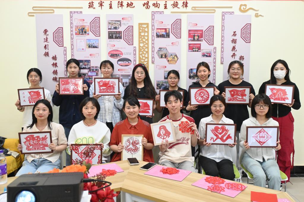 以剪刀为笔,以红纸为笺,剪出的是爱国的情怀,裁出的是对祖国的一片赤诚。同学们将手中的热情汇聚于刀尖,“雕”、“镂”、“剔”、“刻”、“剪”各种技法活灵活现,一划一顿一展,纸张在指尖翻转,栩栩如生的图画出现在同学们的手下。剪出的红船、裁出的长城,不仅仅留存在纸上,更深深地印在同学们的心中。