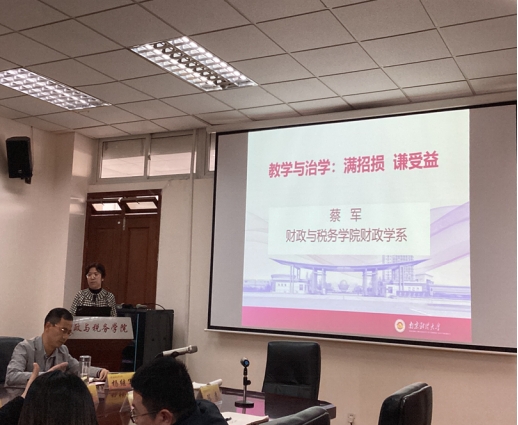随后,蔡教授就财政学与税收学两个专业的关系展开自己的思考。蔡教授认为,财政学与税收学本身就是一个专业,两个专业本就不分彼此,相互促进。因此,蔡教授真切希望,两个系的教师在开展专业教学的过程中,要融合两个专业的特点,更好地从全局性和宏观性的角度为员工塑造财税思维,进一步弘扬公司的财税特色。同时,蔡教授也呼吁老师们要学会反思专业课的教学过程和教学结果,多从员工的角度理解教学的结果和评定方式,更好地在教学中实现师生互动,教学相长。比如,在教学过程中灵活使用课堂备忘录、灵活提问、鼓励主动发言、采用贴近热点和生活的作业等方式激发员工的兴趣。