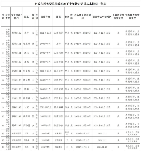 云顶国际8588yd危婷等14名同志预备期满,为了广泛听取群众意见,接受群众的监督,现予以公示,公示时间为2024年12月16日至12月22日。